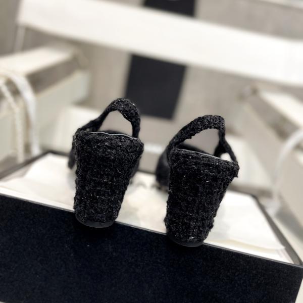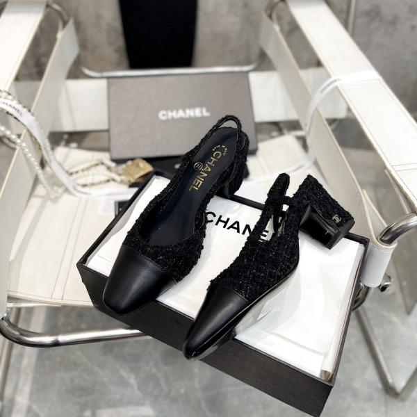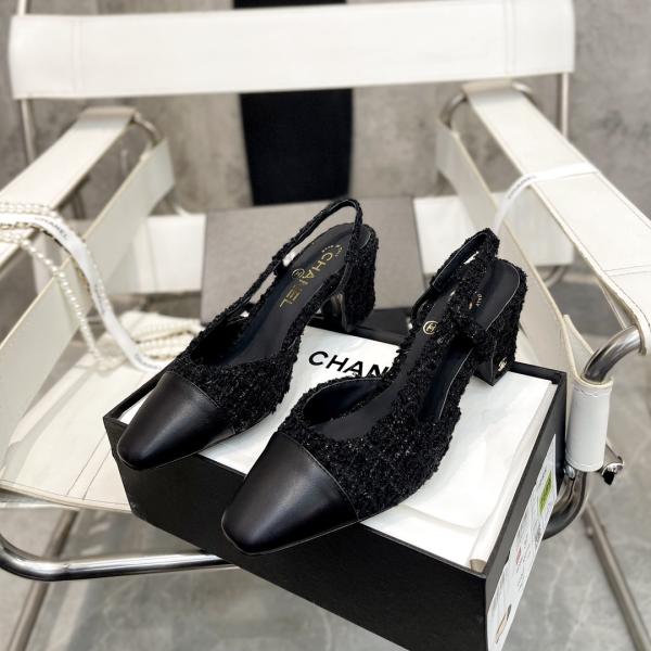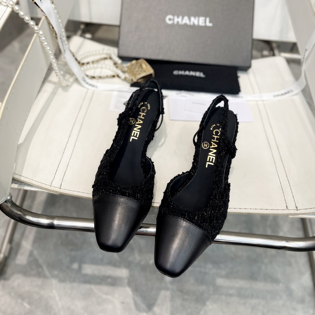 Features the iconic CHANEL dual-C emblem. Crafted from premium imported full-grain sheep leather combined with textured tweed for a luxurious, tactile experience. The square toe and chunky heel deliver stability and elegance, while the slingback strap creates a slender leg silhouette. Interior lined with soft sheep leather and Italian cowhide for exceptional comfort and durability, designed for women who value quality and discerning style.