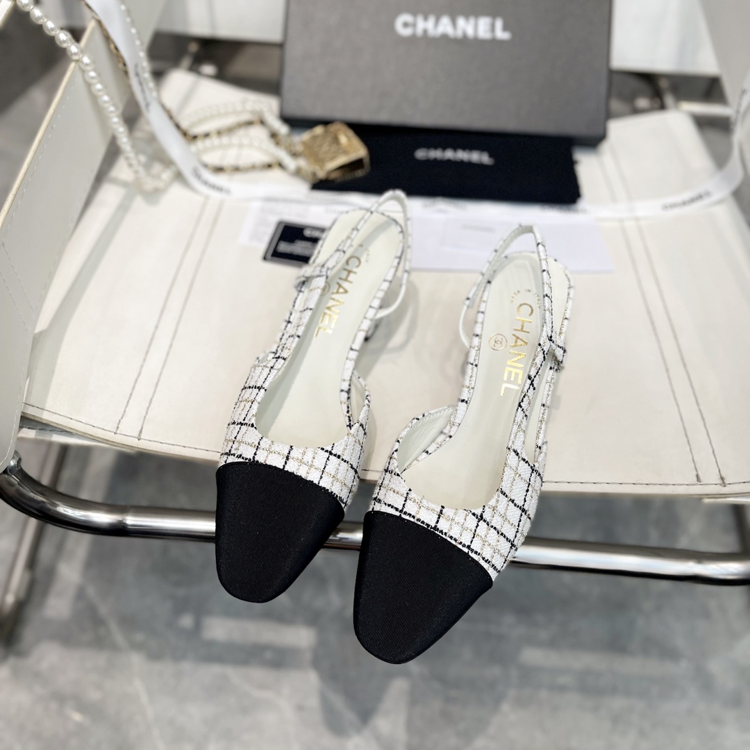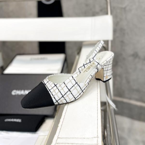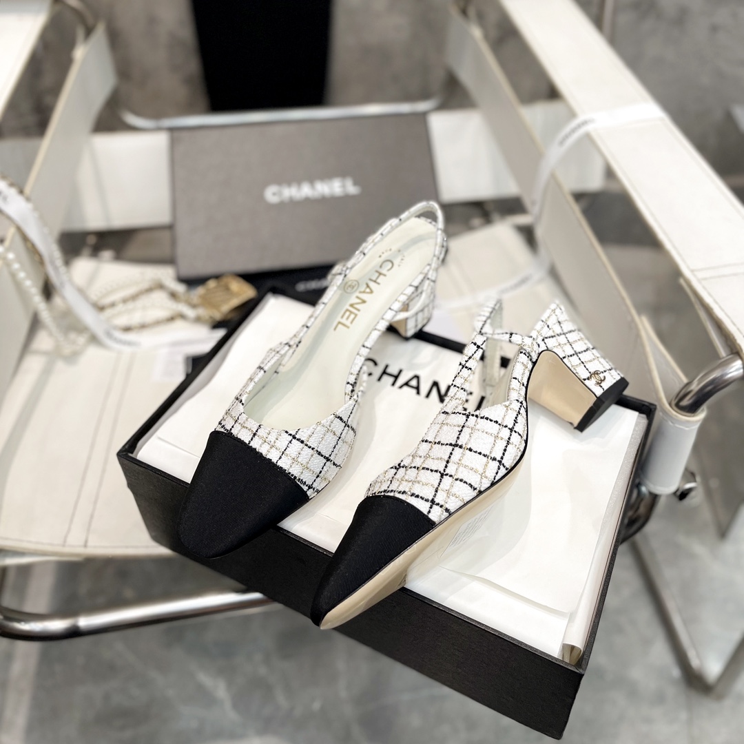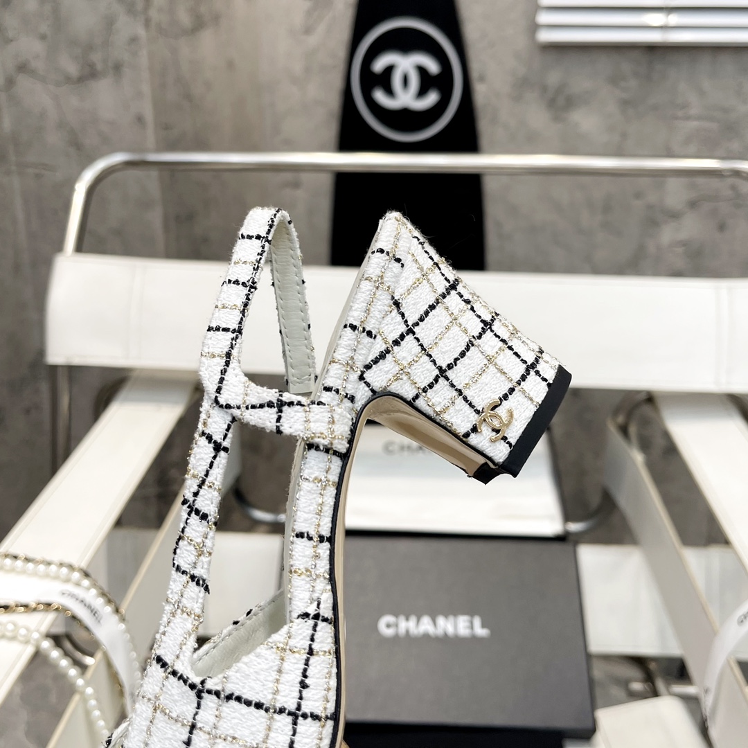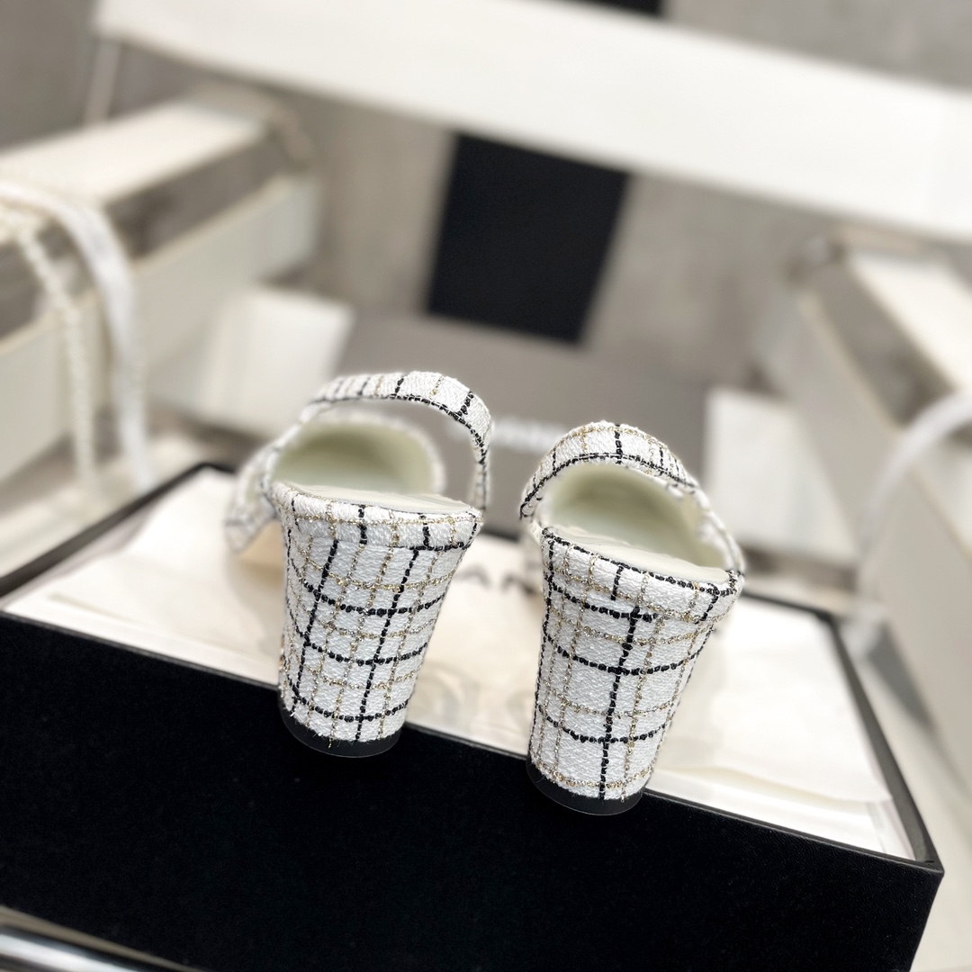 Featuring a distinctive blend of classic CHANEL tweed and black satin, these sandals exude high fashion. Crafted from imported full-grain sheepskin and silk satin, they offer superior quality and a luxurious feel. The square toe and chunky heel provide both elegance and comfort. The slingback strap enhances foot shape and overall sophistication. The iconic double-C metal logo on the heel adds a touch of brand prestige. The Italian imported leather sole ensures soft support, making them ideal for various occasions.