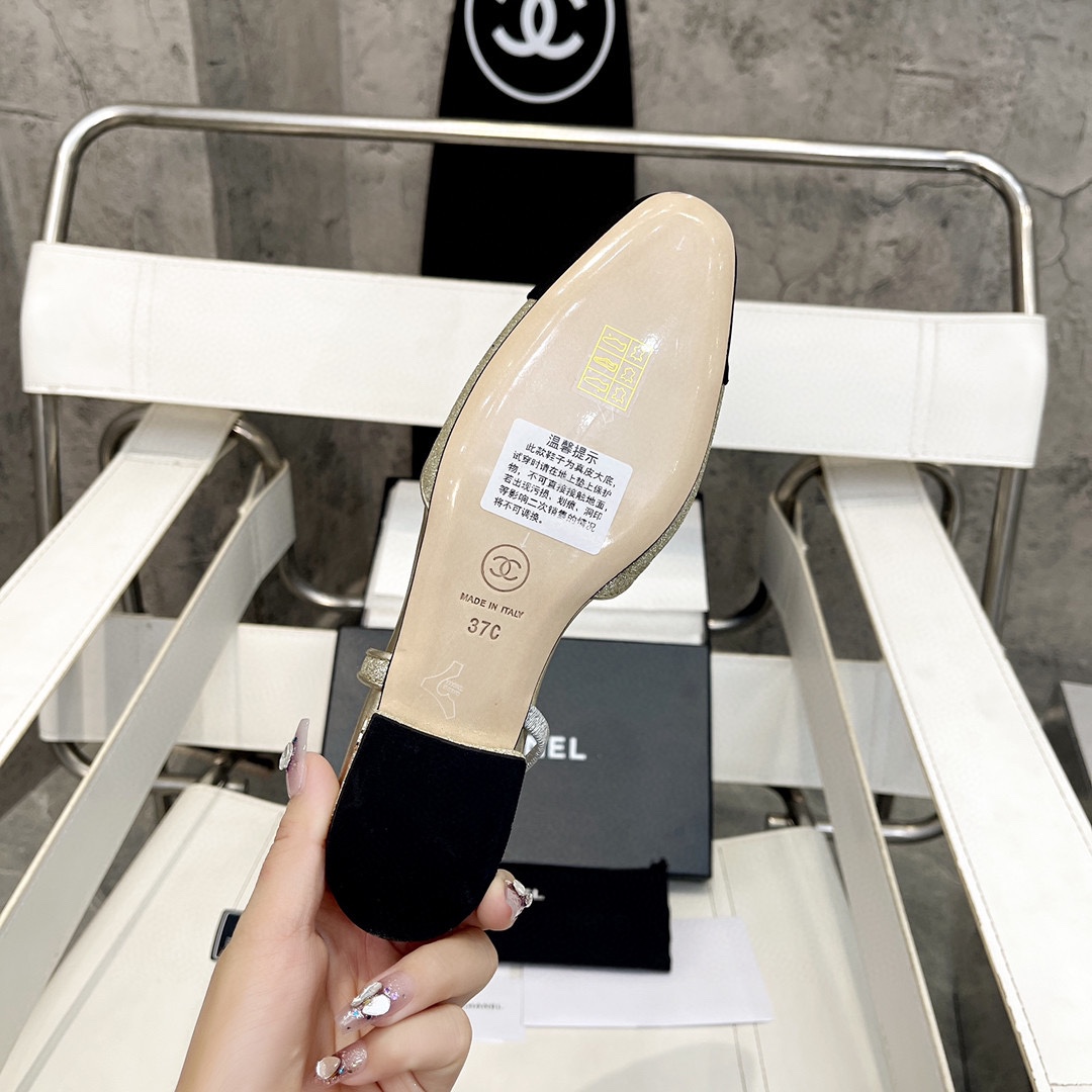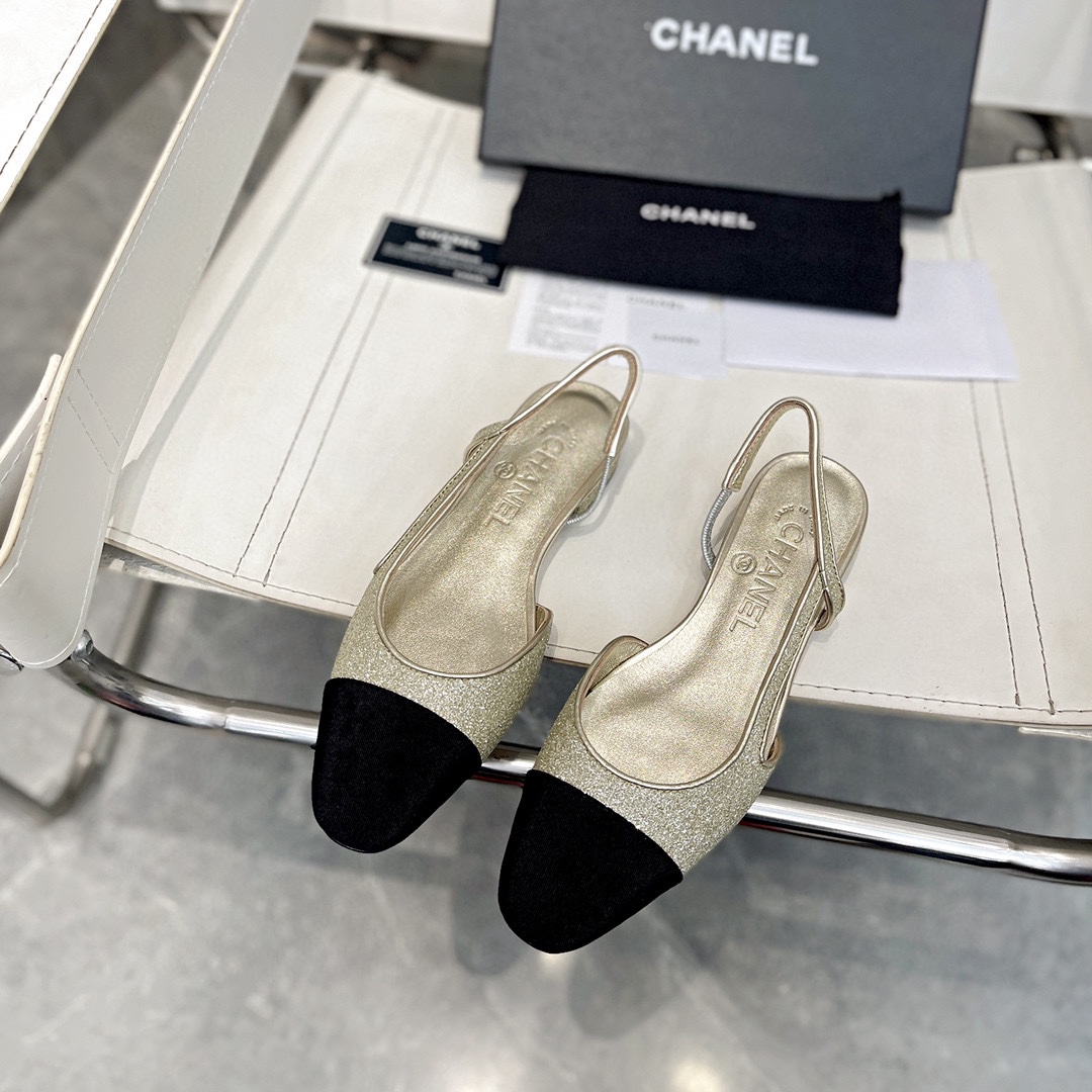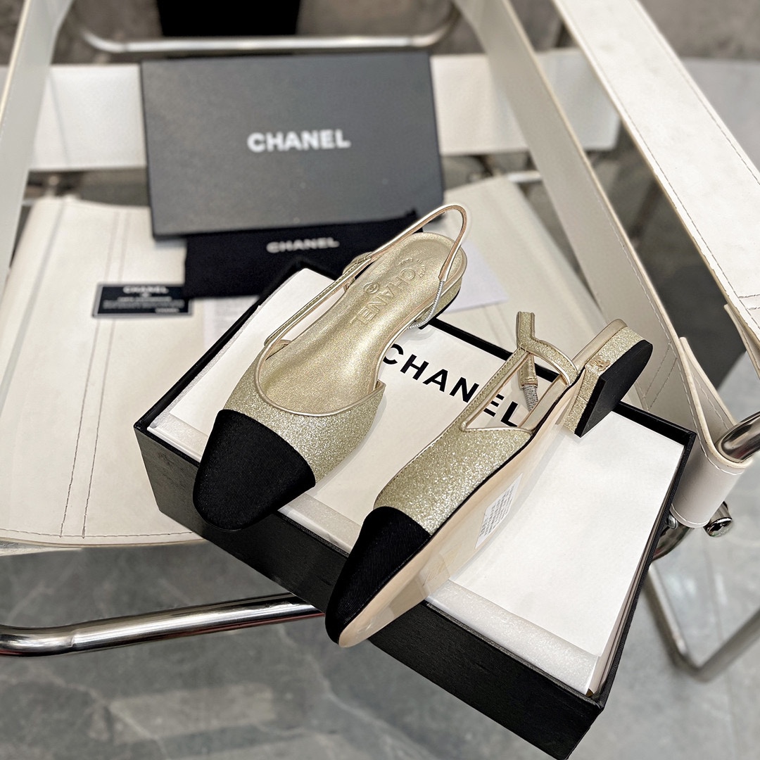 Iconic CHANEL design with a striking gold and black two-tone finish. Crafted from premium imported full-grain lambskin and silk satin for exceptional quality. The elegant slingback strap provides a secure fit, while the 3.5-inch stiletto heel enhances posture and style. Featuring durable Italian calf leather soles and soft lambskin lining for ultimate comfort, these sandals are the perfect blend of luxury and practicality.