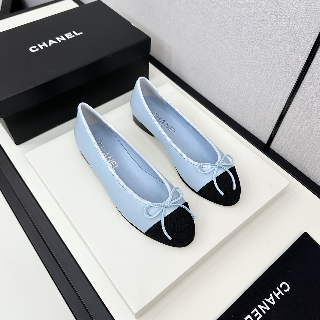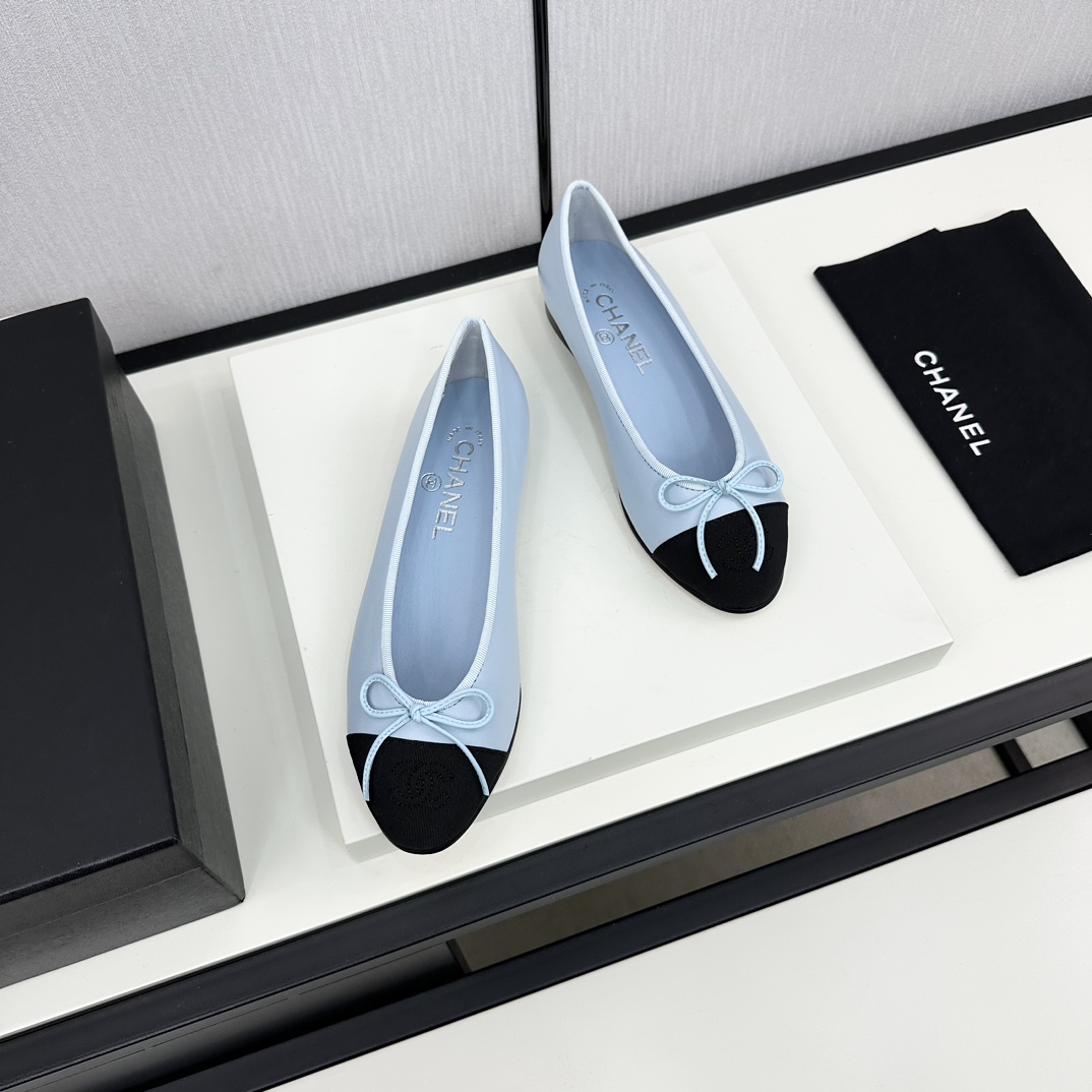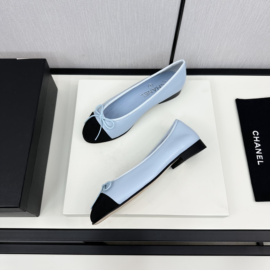 Crafted from imported mixed sheepskin and full sheepskin lining, these flats offer a soft, breathable, and comfortable feel. The classic black and light blue color combination is elegant and versatile. Delicate details include a small bow and white stitching on the toe, enhancing sophistication. The lightweight flat sole ensures no pressure during extended wear, making them ideal for various daily settings.