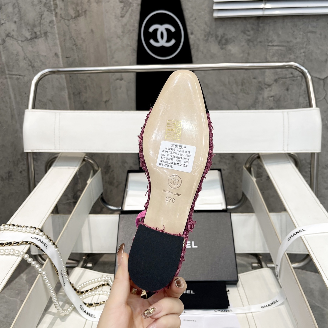The two-tone design highlights unique taste, the chunky heel ensures stability and comfort, silk and sheepskin materials enhance quality, the open-back design provides breathability and lightness, Italian cowhide lining offers soft fit, suitable for various occasions, exuding feminine elegance and charm.