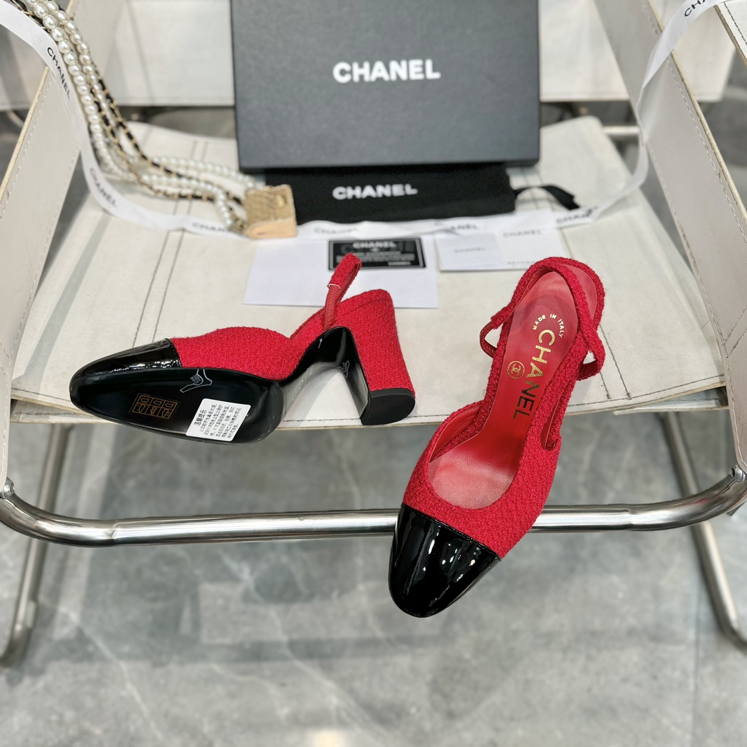 CHANEL's iconic two-tone design, crafted from imported full-grain sheepskin, features a 9cm chunky heel for stability and comfort. The square toe and delicate ankle strap enhance foot contour, while the Italian leather sole ensures durability. Perfect for formal events and everyday elegance, this sandal embodies high-end fashion and timeless style.