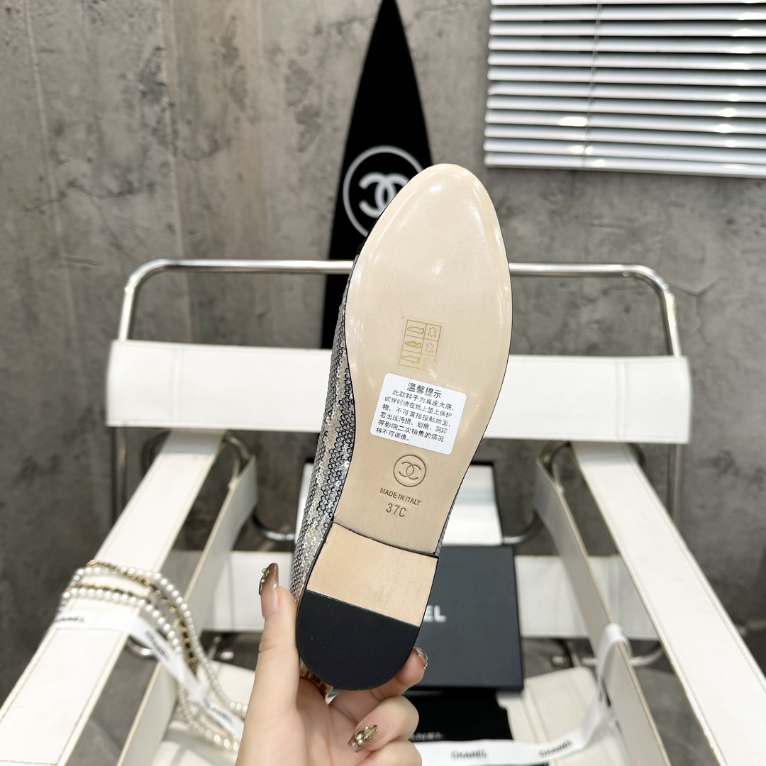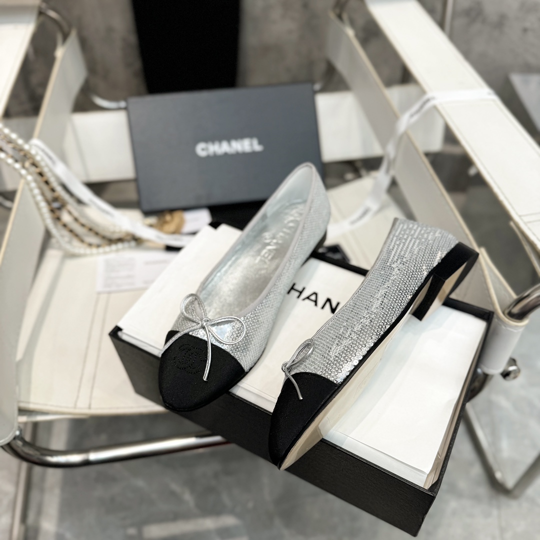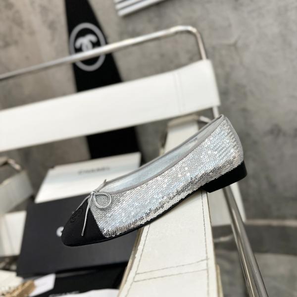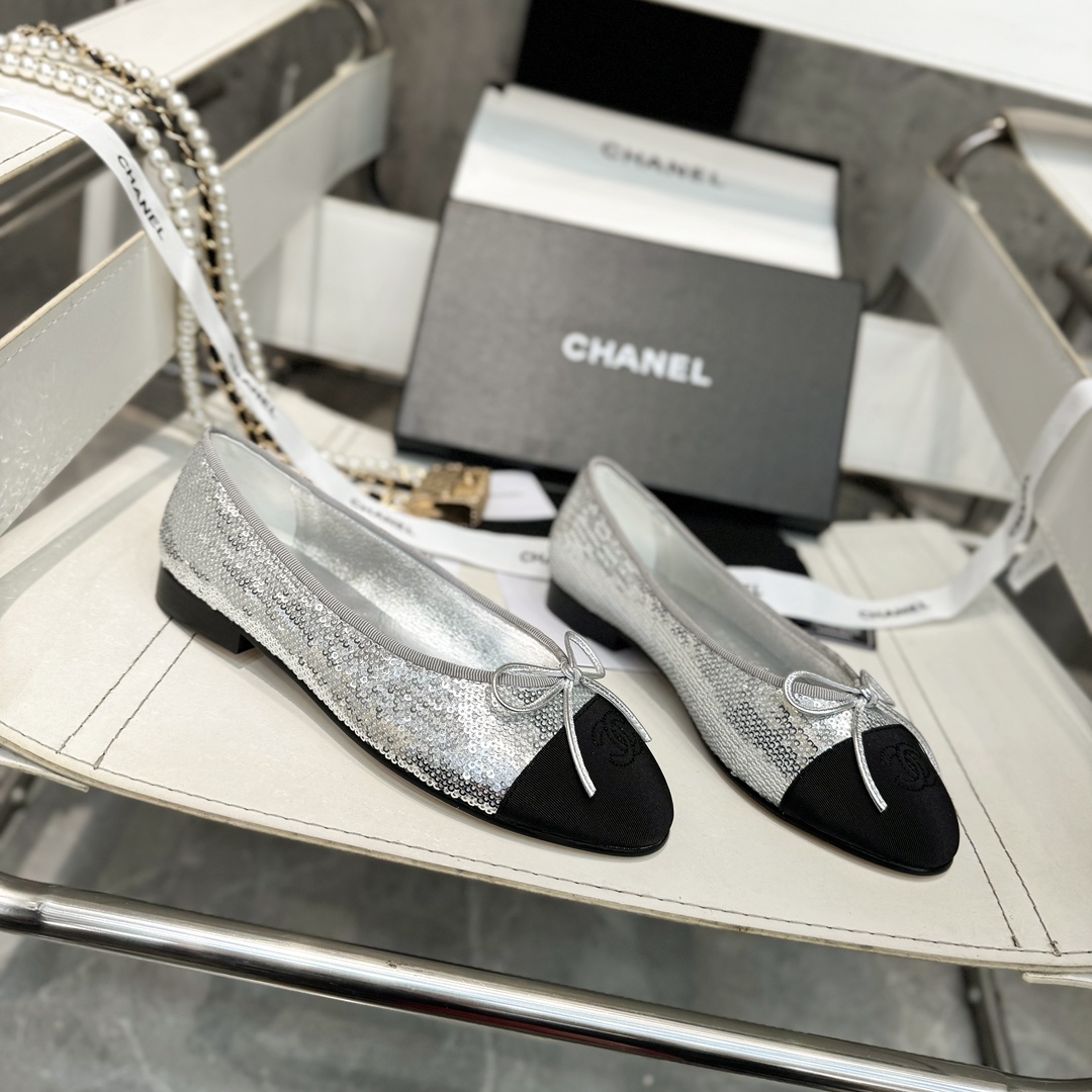 Dazzling silver sequin upper with classic black toe cap for rich visual contrast; elegant bow detail adds sophistication; imported leather sole and sheepskin lining ensure comfort and breathability; low heel design perfect for daily wear and stylish occasions, showcasing luxury quality.