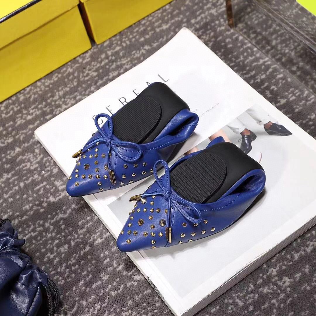 Iconic FENDI design featuring imported eco-friendly lambskin for a soft, comfortable fit. Golden studs and a bow accentuate luxury and individuality. The pointed toe silhouette enhances elegance and slims the foot. A lambskin insole provides excellent arch support for all-day wear, while the anti-slip outsole ensures safety and practicality. Perfect for everyday fashion and stylish occasions.