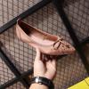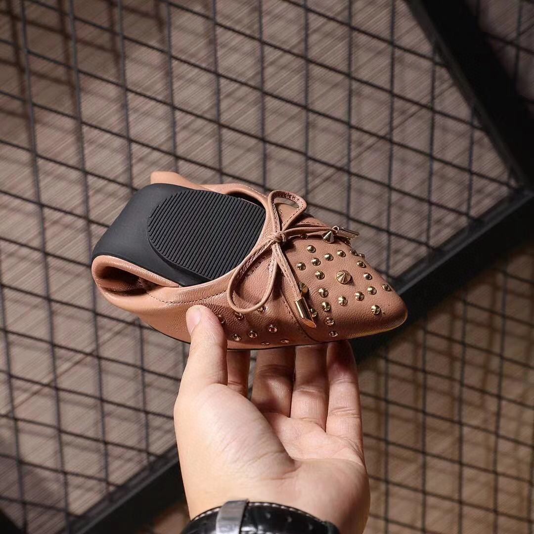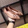 Crafted from imported eco-friendly lambskin for softness and durability; bold pointed toe with intricate gold-tone studs for a modern, edgy look; delicate bow detail adds feminine elegance; soft lambskin lining ensures comfort and breathability; durable, non-slip rubber outsole for safety; versatile design perfect for daily wear, work, and casual outings.